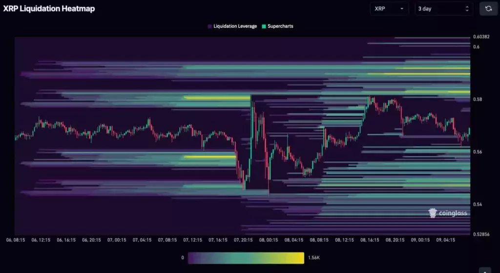 Трёхдневная тепловая карта ликвидации $XRP. Источник: CoinGlass