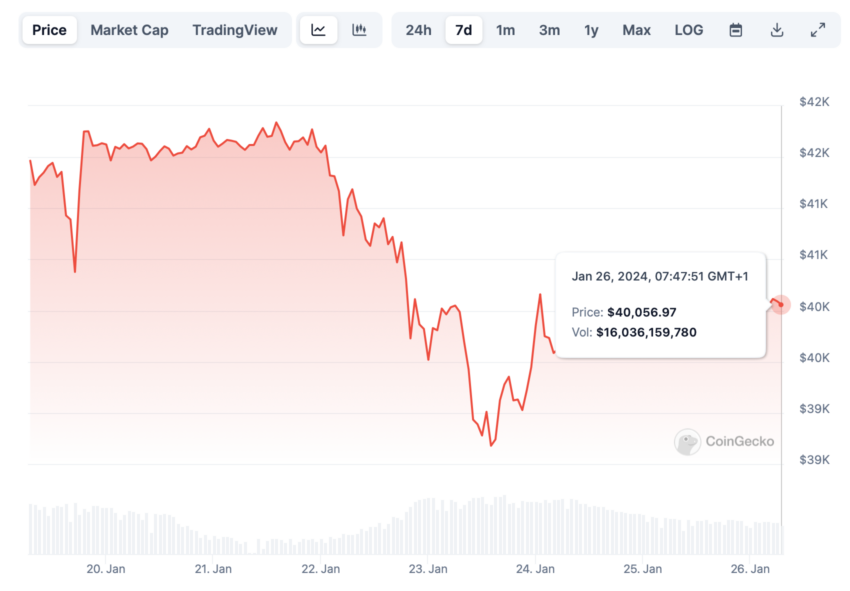На этой неделе цена биткоина опускалась ниже $39 000 на фоне активных продаж Grayscale. На момент написания главная криптовалюта частично отыграла потери и торгуется на уровне $40 000.