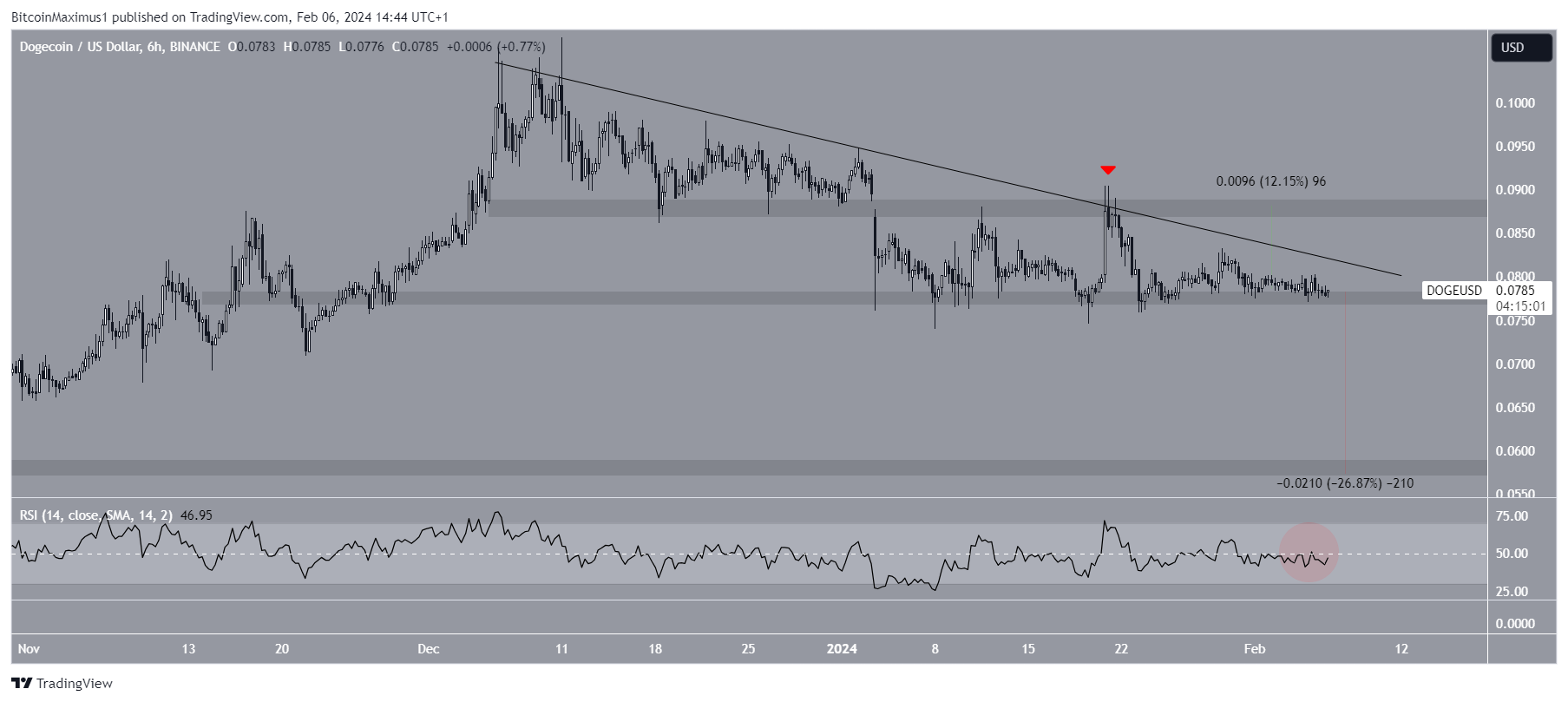 Цена Dogecoin ($DOGE) значительно снизилась с максимума в 0,107 доллара, достигнутого 11 декабря 2023 года.