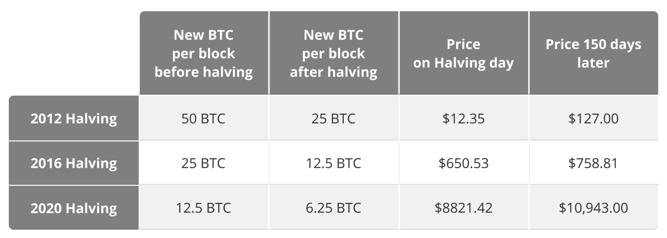 Следующий (четвертый) халвинг биткоина произойдет уже через полтора месяца — в середине апреля. Исторически влияние халвинга на курс криптовалюты не вызывает сомнений: через 150 дней после второго халвинга, состоявшегося 9 июля 2016 года, цена выросла с $651 до $759, а после предыдущего (третьего) халвинга — с $8 821 до $10 943. И в том, и в другом случае, это еще не было окончанием бычьего цикла.