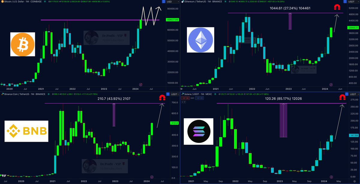 Многие участники криптосообщества уверены в том, что BTC еще не реализовал весь потенциал роста. Трейдер Doctor Profit считает, что для следующего рывка криптовалюте нужно преодолеть уровень $72 500. При этом в ближайшее время он ждет боковое движение биткоина в диапазоне $64 тыс. — $80 тыс. Боковик, уверен Doctor Profit, даст альткоинам силы реализовать долгожданный рост. Такое поведение рынка, по его мнению, продлится до халвинга.
