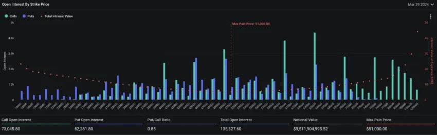По данным Deribit, соотношение пут и колл опционов на BTC держится на уровне 0,63. Это означает, что трейдеры по-прежнему продают больше коллов или длинных контрактов, чем путов или коротких контрактов. Максимальная болевая точка — то есть цена, при достижении которой актив принесет финансовые потери наибольшему числу держателей, — находится на отметке $65 тыс.