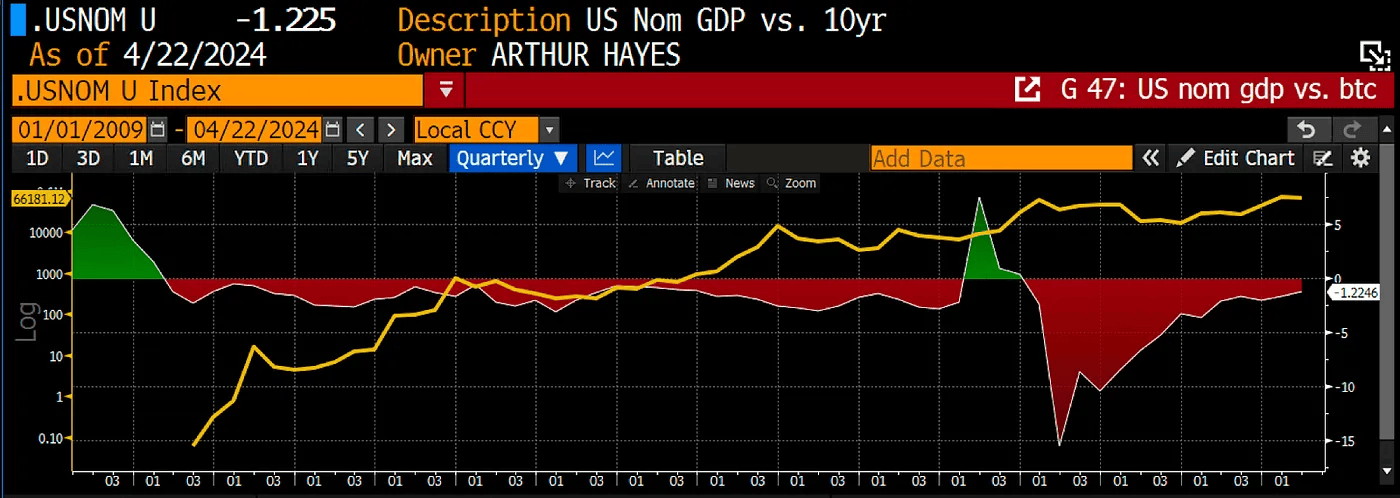 Ключевая задача для инвесторов — понять, когда государственные облигации являются хорошей инвестицией, а когда нет. Самый простой способ определить это — посмотреть на номинальные темпы годового роста ВВП по отношению к доходности десятилетних облигаций.