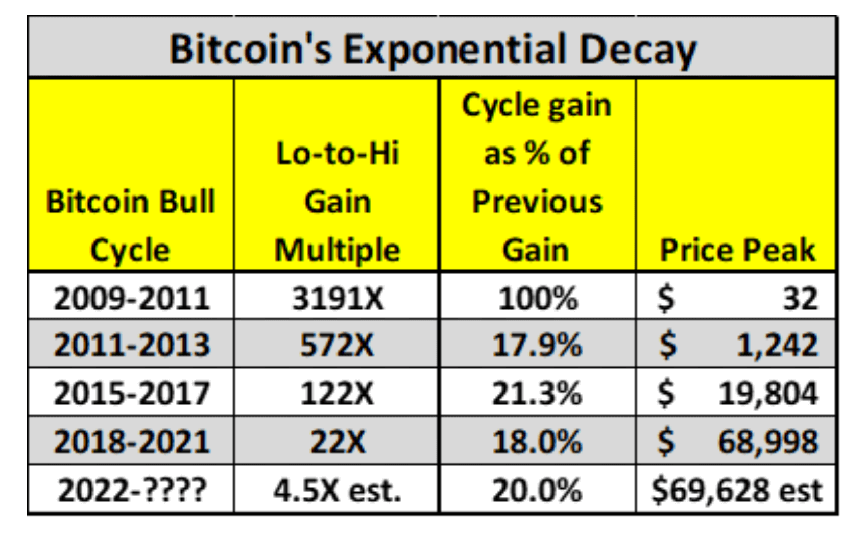 Дело в том, что циклы роста за эти годы потеряли свою динамику. Вам может нравиться история этих данных или нет, но вам придётся иметь с ними дело или по крайней мере учитывать их, корректировать или просто игнорировать. На самом деле я не в восторге от экспоненциального распада, происходящего в Биткоине, ведь он является одной из моих самых крупных инвестиционных позиций.