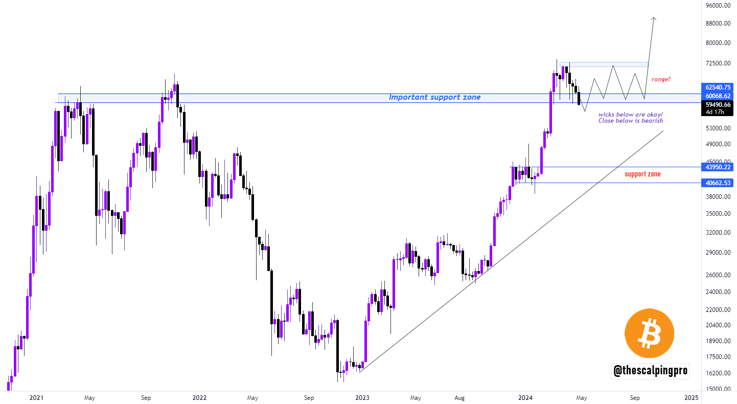 На фоне падения биткоина в начале мая 2024 года участники криптосообщества поделились своими прогнозами. Мнения инвесторов о том, что будет дальше с BTC, разошлись.
