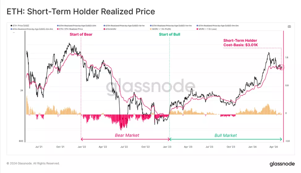 На момент написания «себестоимость» Ethereum у спекулянтов немногим превышает $3000, что близко к текущей цене. Это говорит о рисках формирования панических продаж в случае усиления волатильности. В биткоине премия выше, средний уровень приобретения краткосрочными инвесторами составляет $59 800.