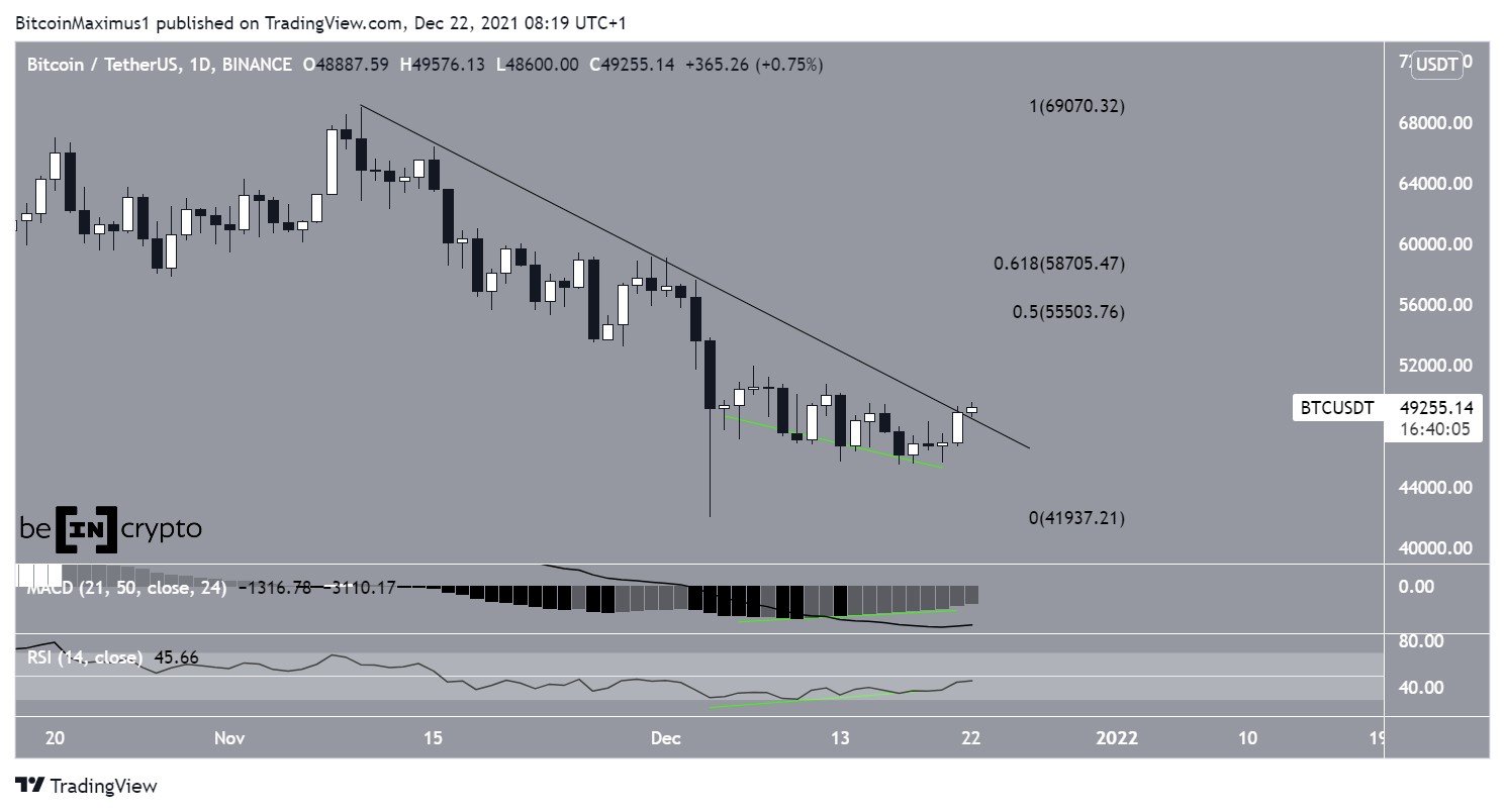 После этой бычьей дивергенции курс BTC начал расти и в итоге пробил 21 декабря линию нисходящего сопротивления.