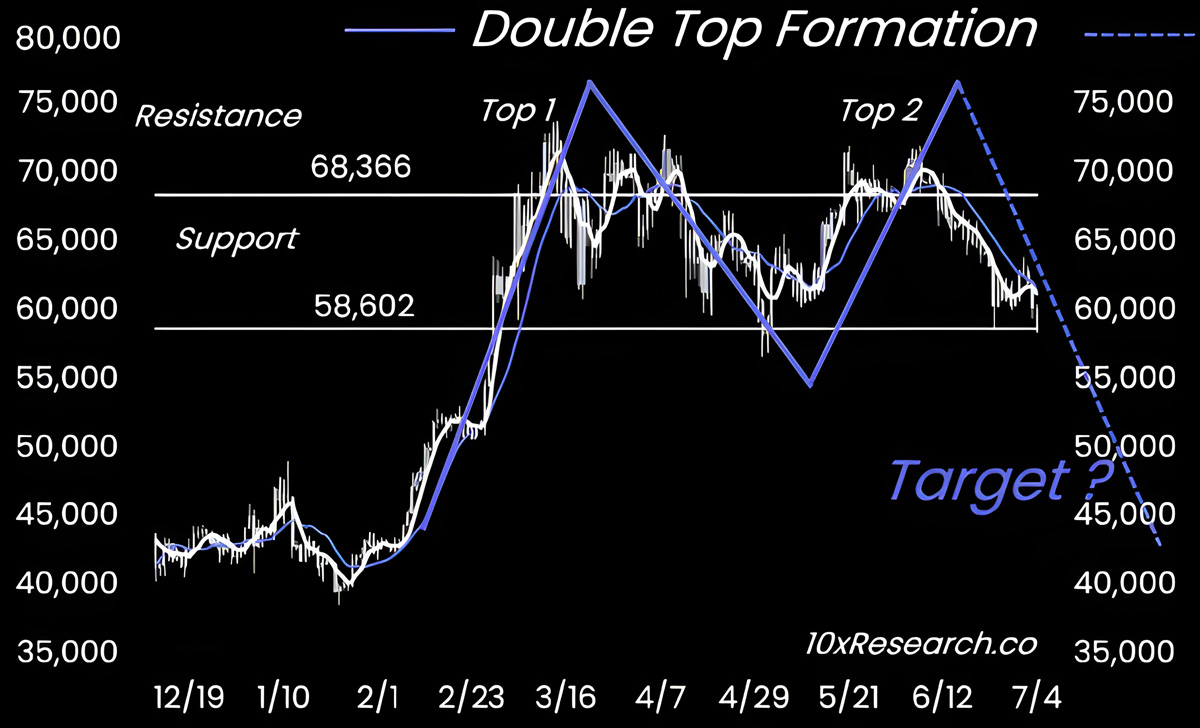 Новая волна турбулентности накрыла рынок биткоина, вызвав тревогу среди инвесторов и аналитиков. Согласно последнему отчету компании 10x Research, первая криптовалюта стоит на пороге значительного падения, которое может привести к снижению ее стоимости до отметки в $50 000.