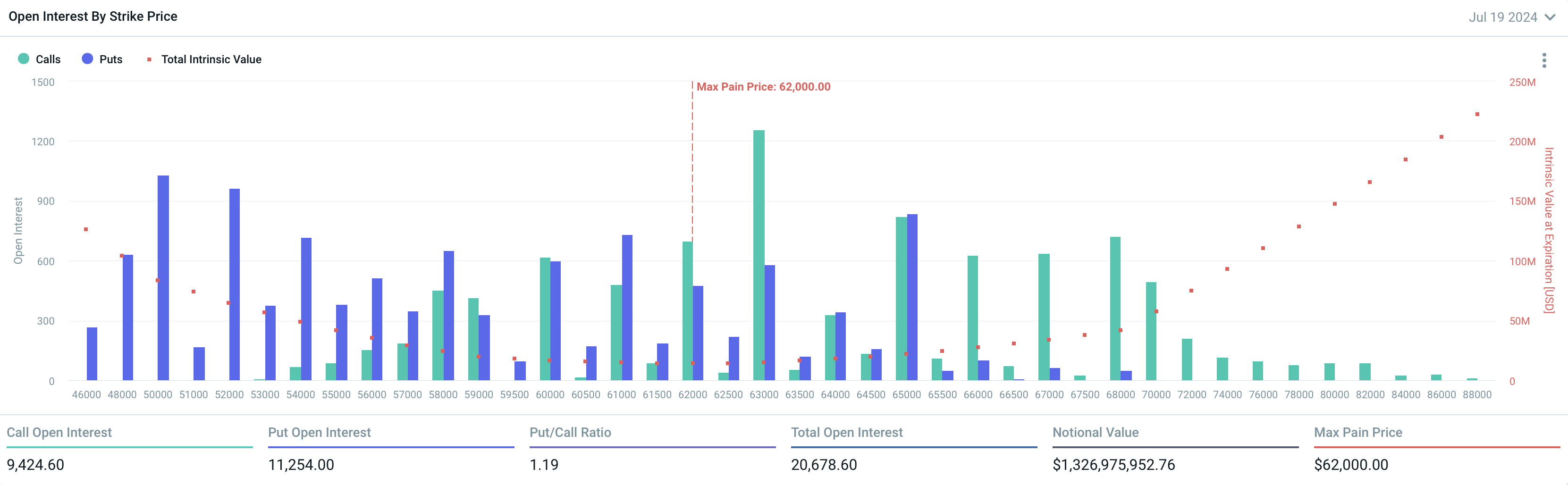 Максимальная болевая точка — то есть цена, при достижении которой актив принесет финансовые потери наибольшему числу держателей, — находится на отметке $62 000. Cоотношение пут/колл опционов на Ethereum, в свою очередь, составляет 0,37, а максимальная болевая точка находится на отметке $3 150.
