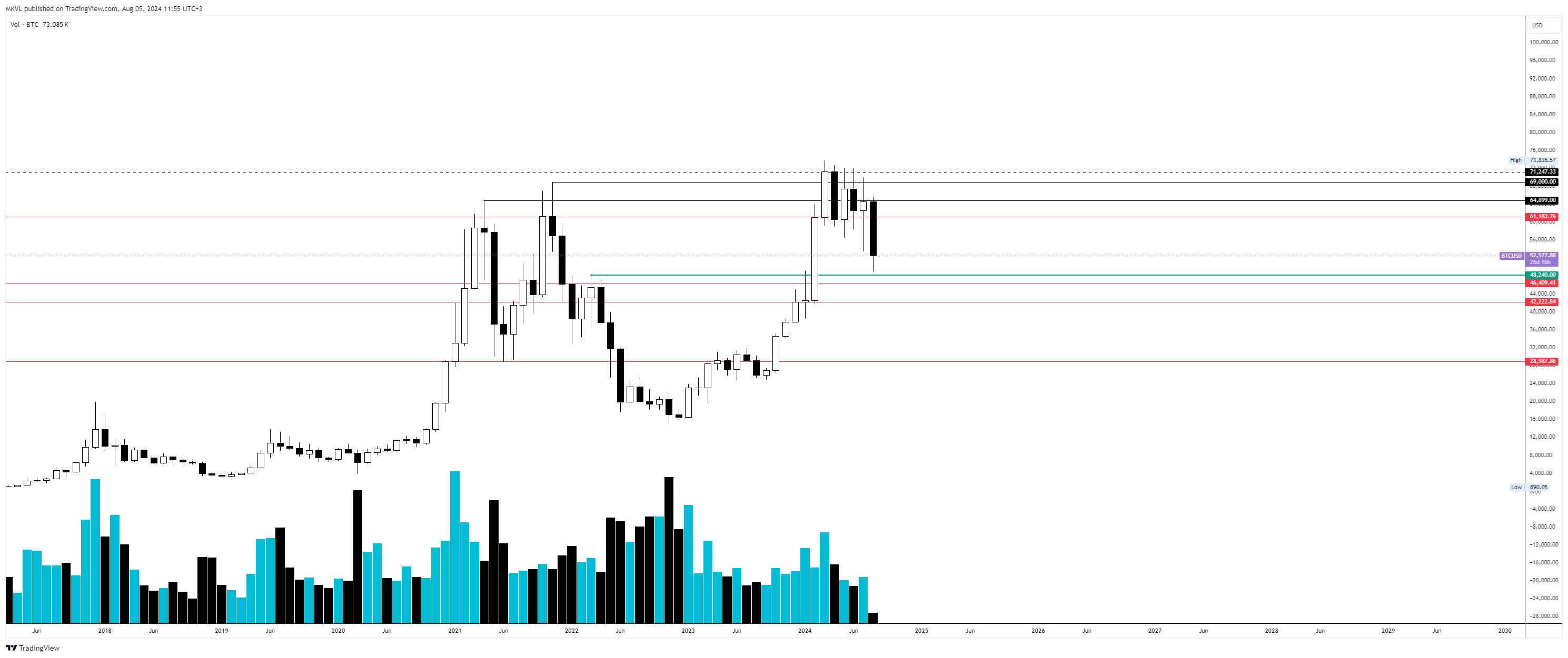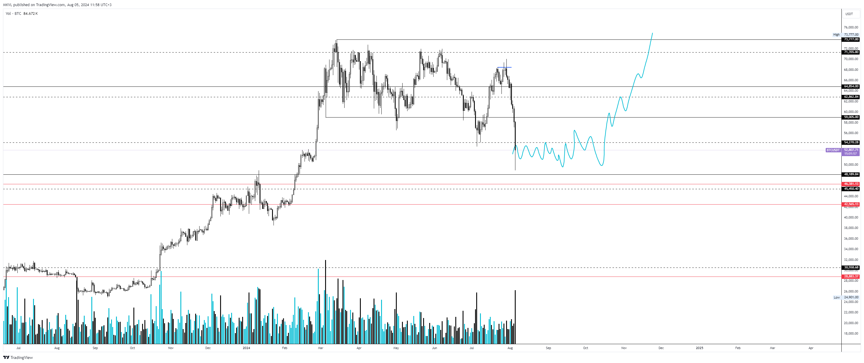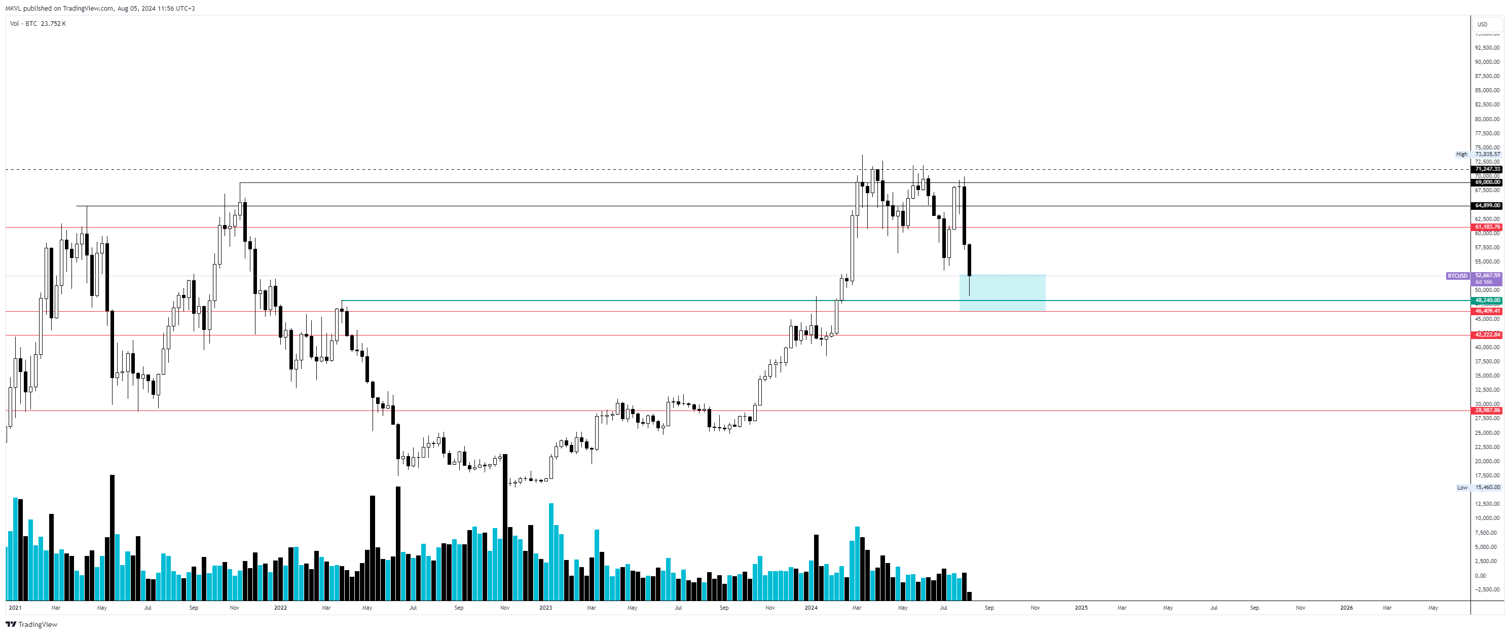 С 4 по 5 августа 2024 года произошла значительная просадка крипторынка. Курс биткоина протестировал $49 000, а Ethereum упал ниже $2200. Команда Cryptology провела анализ и спрогнозировала дальнейшее движение цен этих активов.