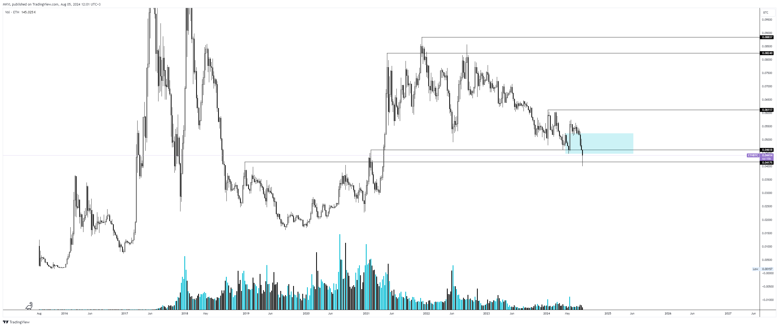 На графике цены Ethereum в паре с биткоином мы получили слом тренда и отмену всех сценариев. Крипторынок ждет новый этап для формирования роста. Созданы все предпосылки для покупки и накопления альткоинов.