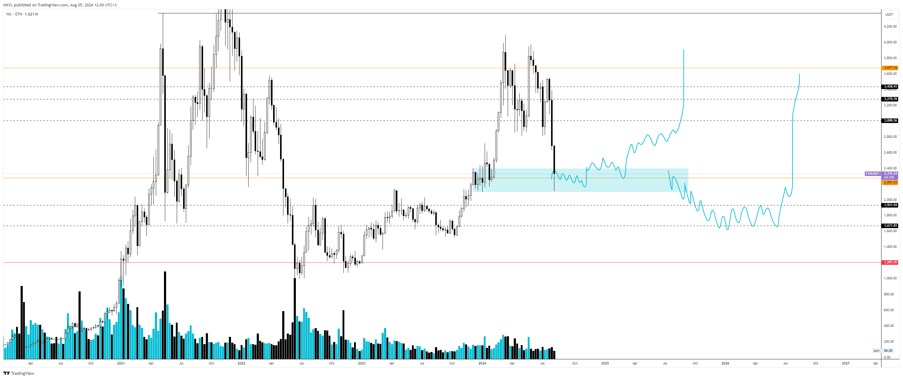 Ключевая цель на август — выкупить актив после падения и закрыть месячную свечу выше предыдущего минимума. В этом случае можно будет строить более оптимистичные прогнозы.