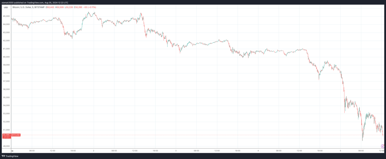 На момент написания статьи биткоин торгуется на отметке $ 50 453, снизившись на 17,7% за последние 24 часа.