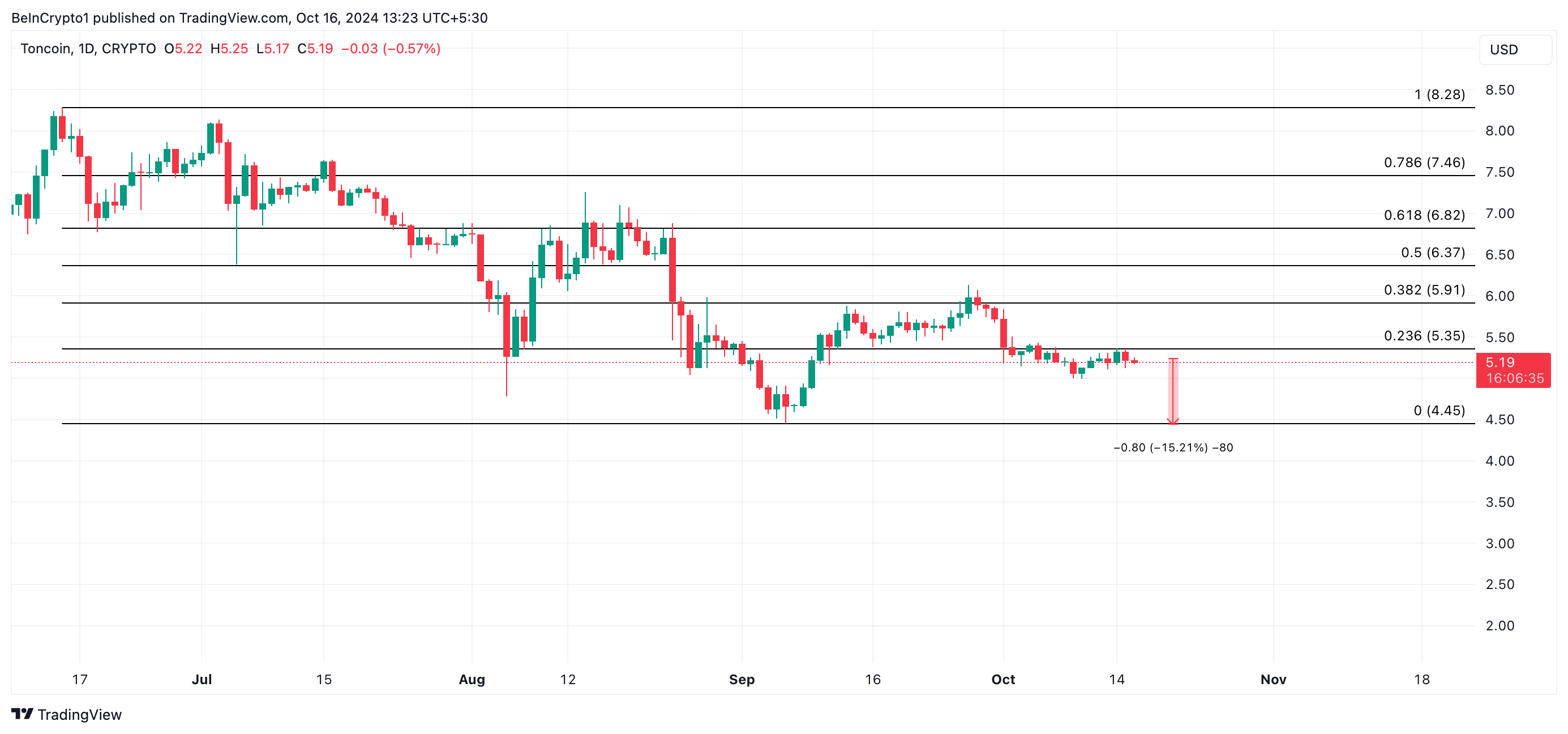Технические индикаторы указывают на возможное приближение Toncoin к 30-дневному минимуму, а медвежье настроение на рынке может спровоцировать дальнейшее падение цены.