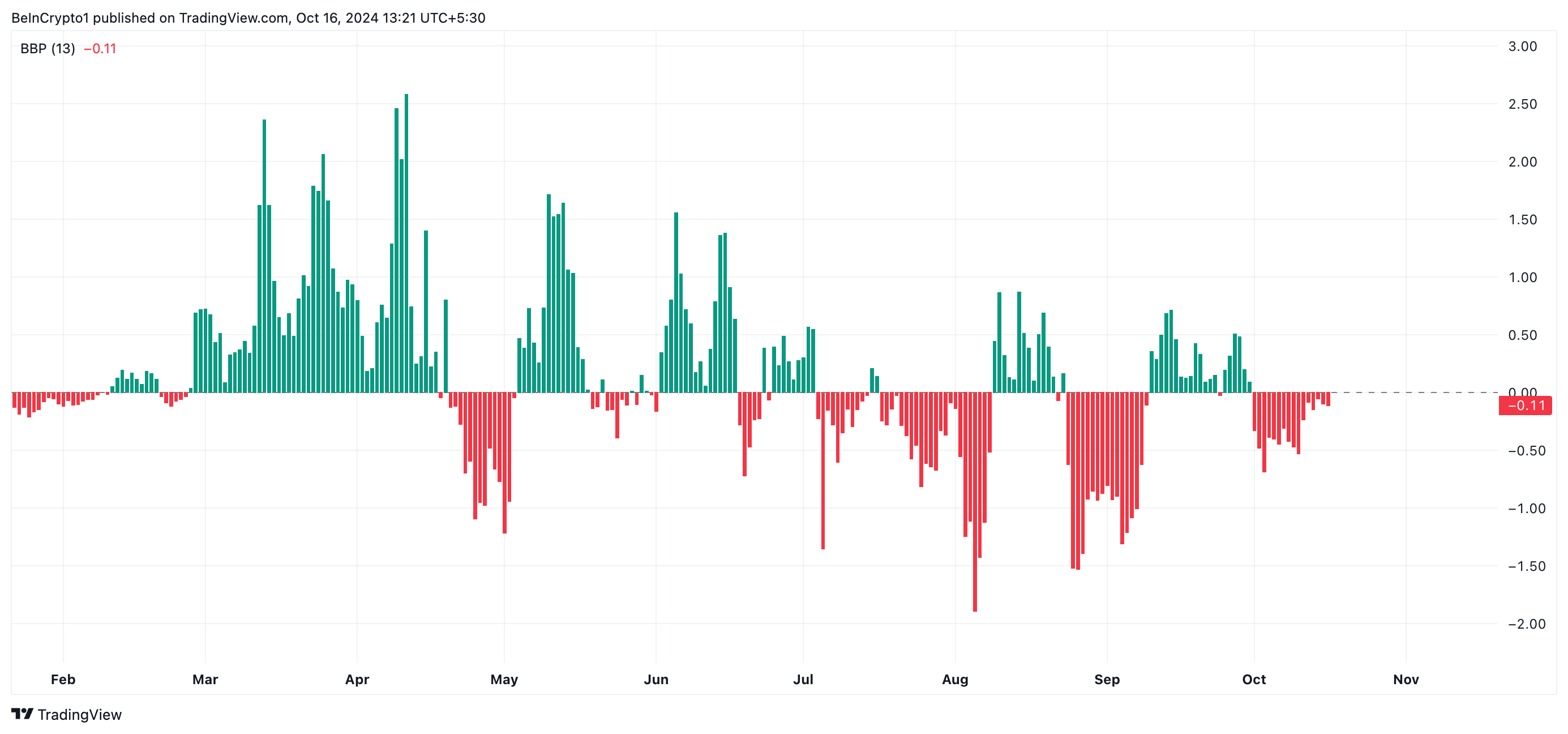 Отрицательные значения индекса Elder-Ray тоже подтверждают этот вывод. Сейчас данный индикатор, который анализирует давление покупателей и продавцов, находится ниже нуля — на уровне -0,11. Отрицательный индекс говорит о том, что на рынке преобладают медведи.