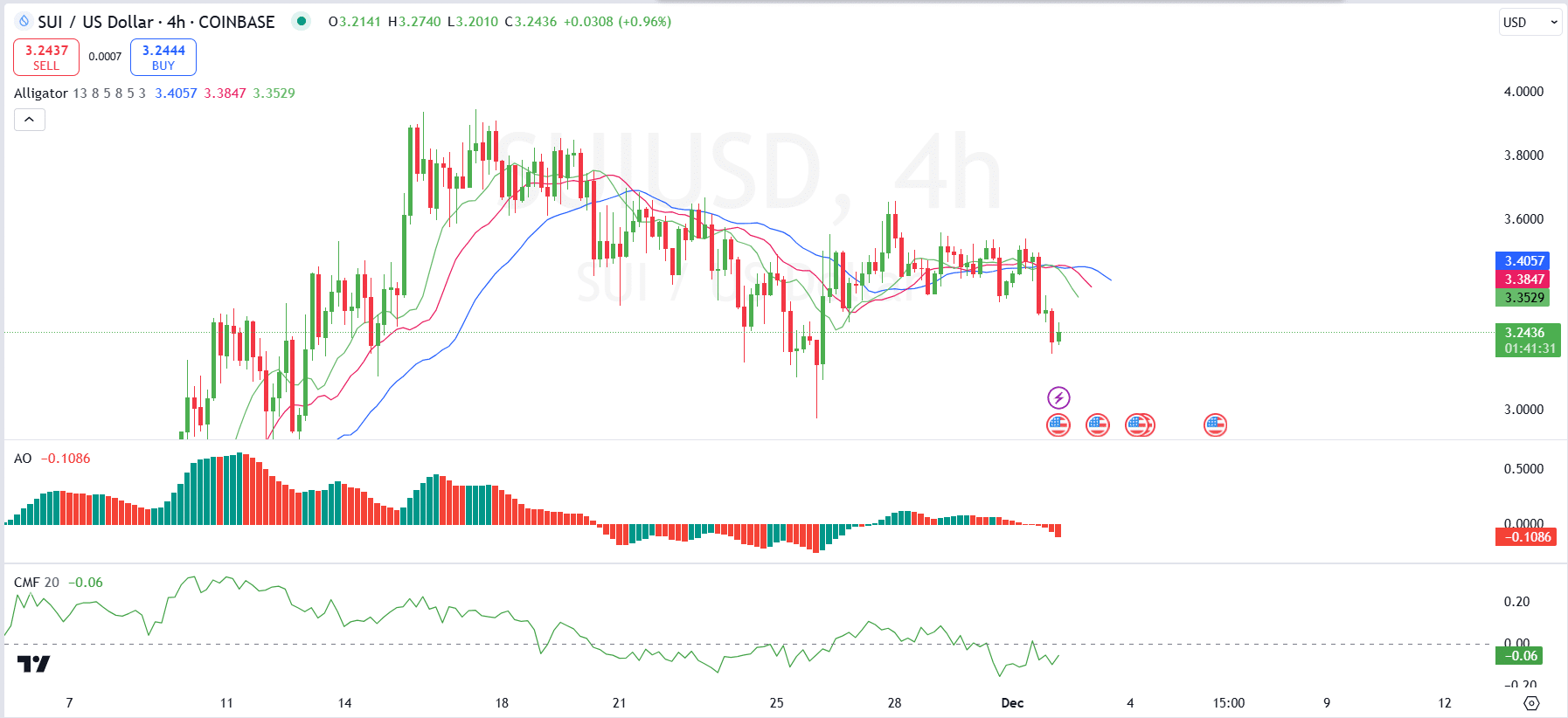 Ранее токен скорректировался после достижения исторического максимума в $3,93, зафиксированного 17 ноября. Сейчас внимание инвесторов сосредоточено на реакции цены в критической зоне, что определит перспективы SUI в краткосрочной перспективе.