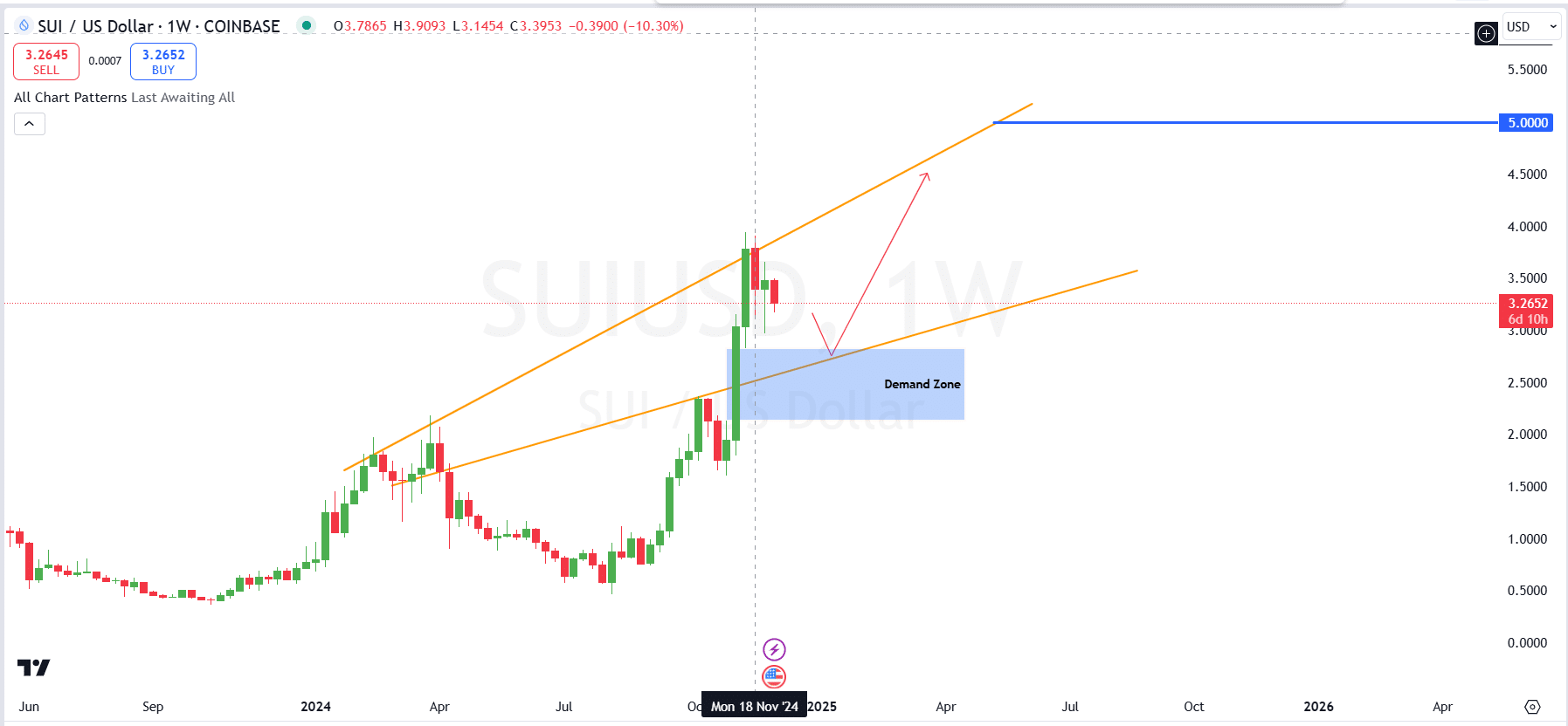 Ключевой зоной поддержки остаётся область $3. Этот уровень будет определяющим для дальнейшего движения SUI, поскольку тестирование зоны спроса $3,20–$3,25 может либо привести к отскоку, либо указать на возможное снижение.