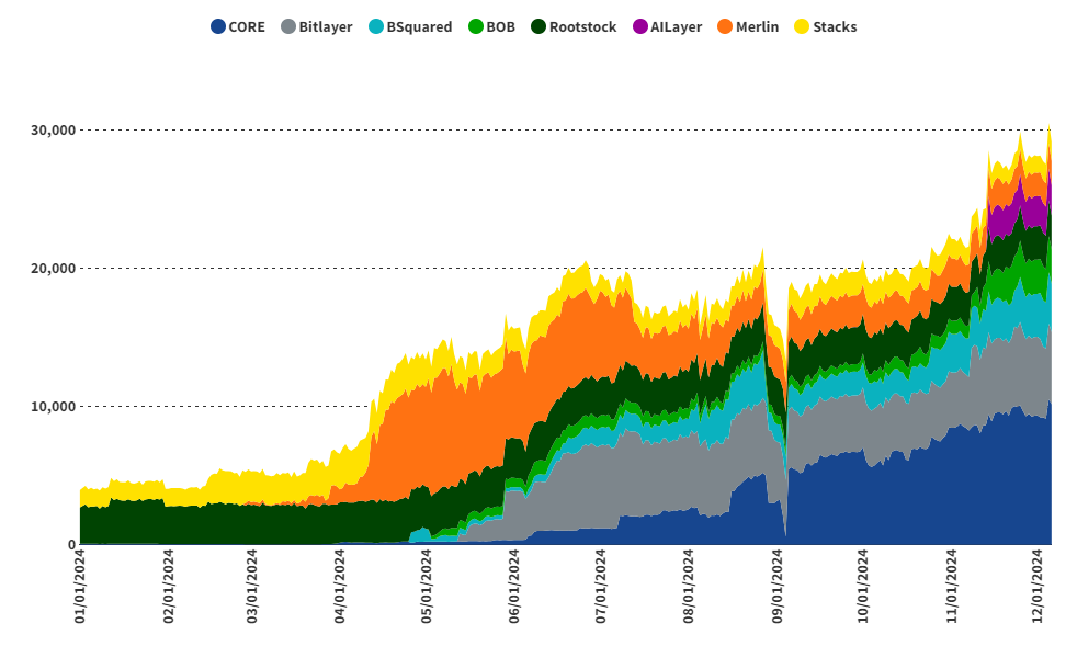 Аналитики предположили, что TVL L2-проектов на биткоине достигнет 100 000 BTC, опираясь на 600% рост к 30 000 BTC в течение последнего года.