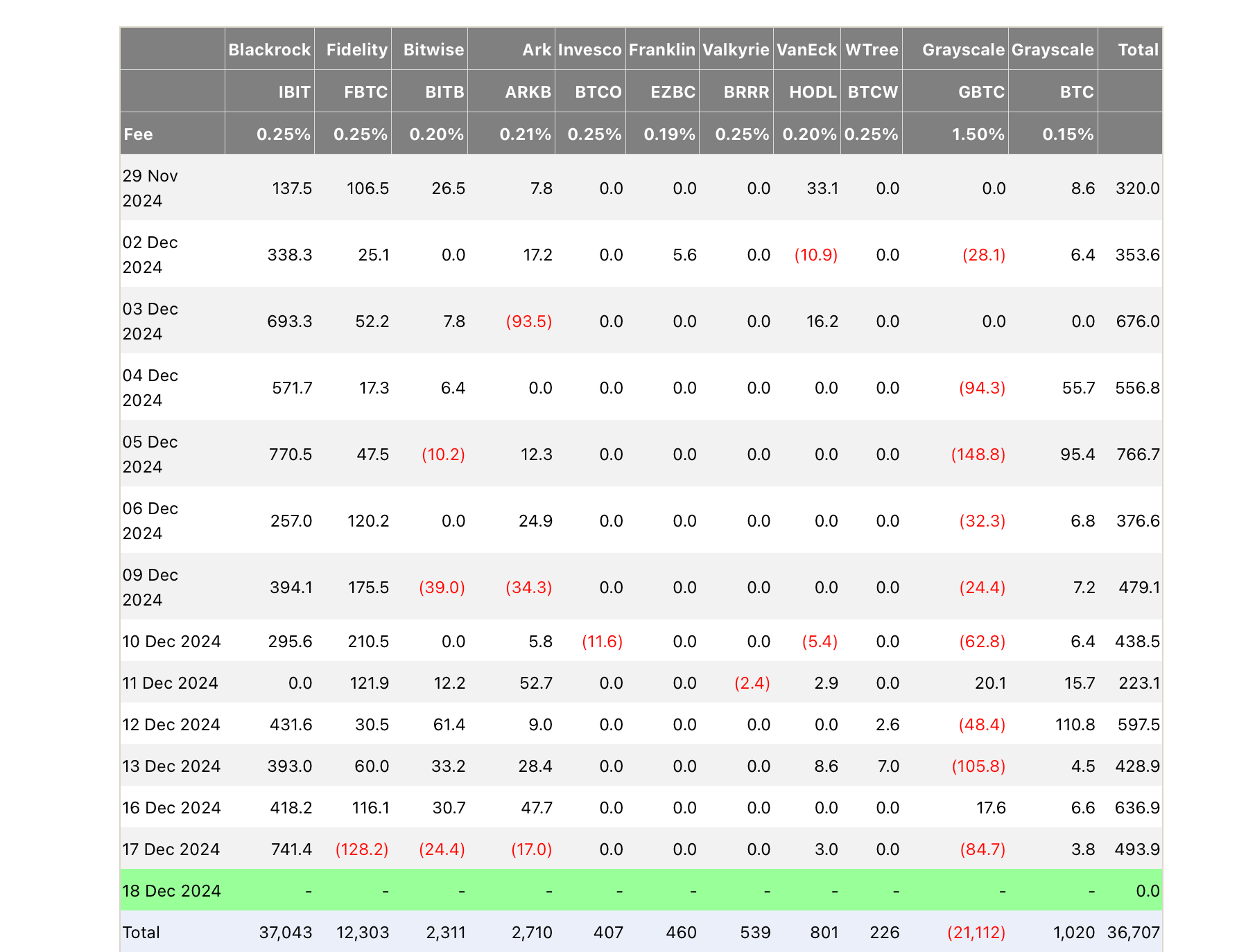 Большая часть показателя приходится на инструмент iShares Bitcoin Trust от компании BlackRock — фонд привлёк 37 миллиардов. Ну а рекорд по выводу средств зафиксировал GBTC от Grayscale на уровне 21.1 миллиарда.