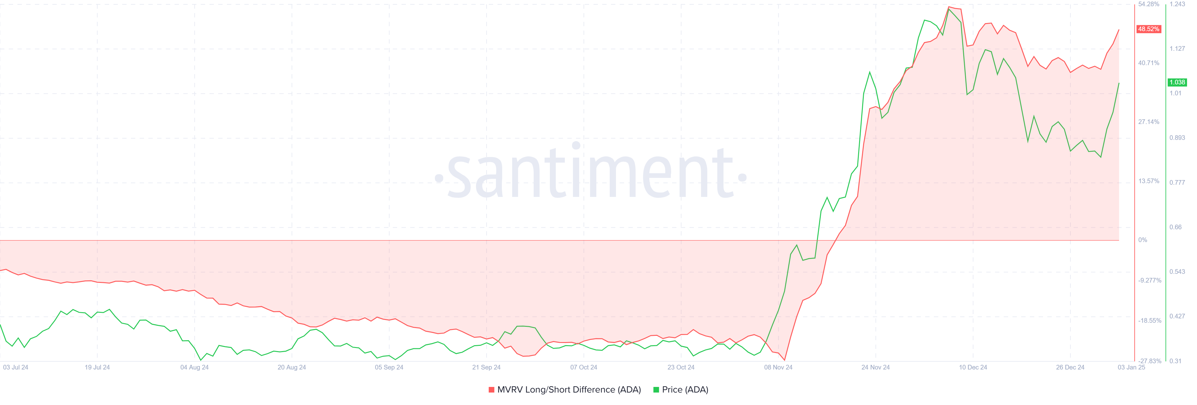 Долгосрочные держатели Cardano сейчас находятся в прибыли. На это указывает коэффициент MVRV Long/Short Ratio. Эта группа — костяк для любого криптоактива. Доверие ходлеров помогает избежать резких падений цены. Их лояльность сыграла важную роль в восстановлении ADA.