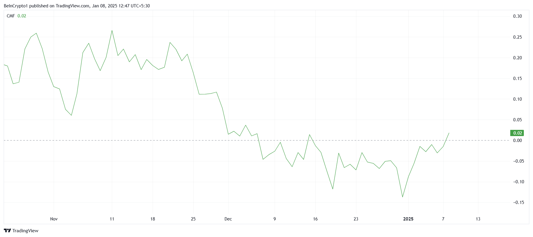 Кроме того, индикатор денежного потока Чайкина (CMF) сейчас поднялся выше нейтральной линии. Этот небольшой подъем говорит о том, что притоки капитала в SOL растут. Исторически этот фактор часто поддерживает восстановление цены криптовалюты.