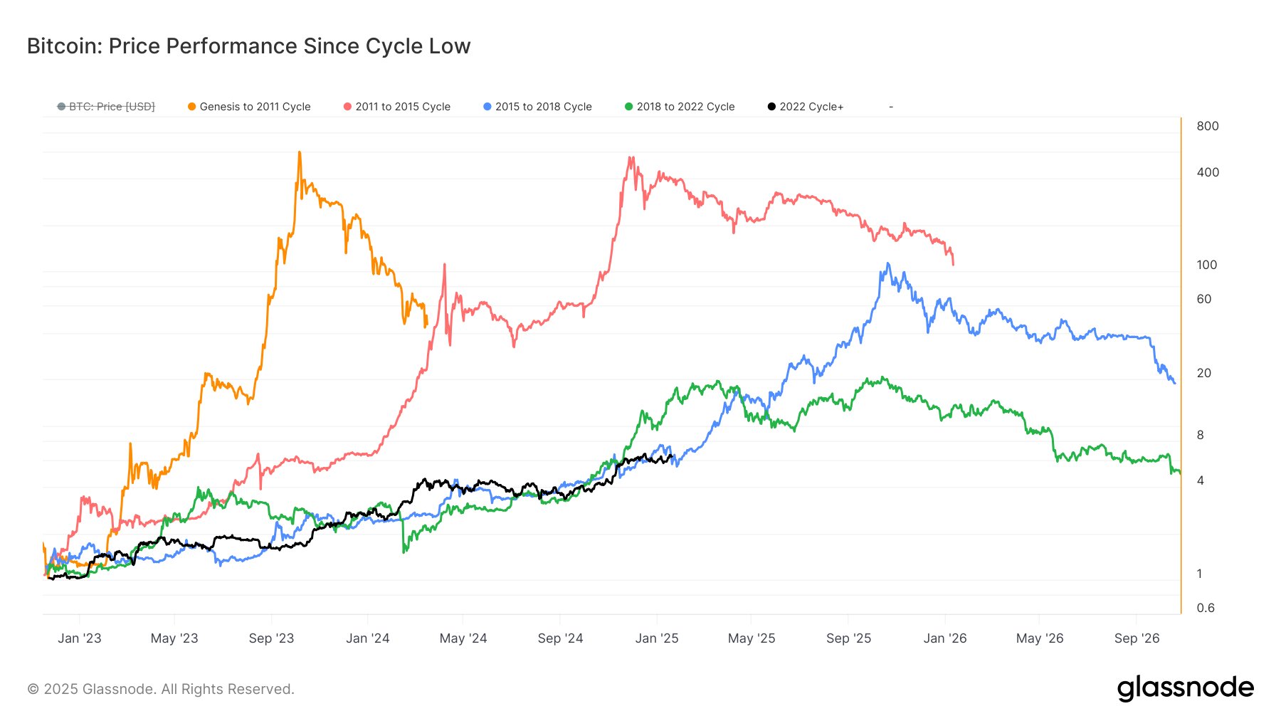 «Хотя этот цикл показывает более размеренный рост, он все еще соответствует историческим моделям эпохи халвинга 2015-2018 гг», — отметили аналитики в обзоре на X.