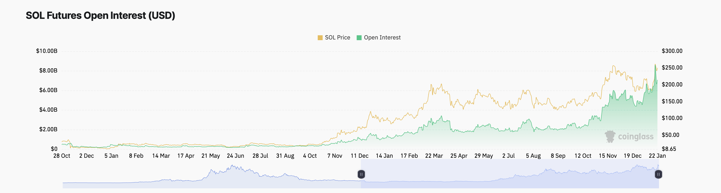 Такие значения OI также указывают на сильный бычий импульс и растущую уверенность трейдеров, которая может хорошо поддержать ралли SOL.