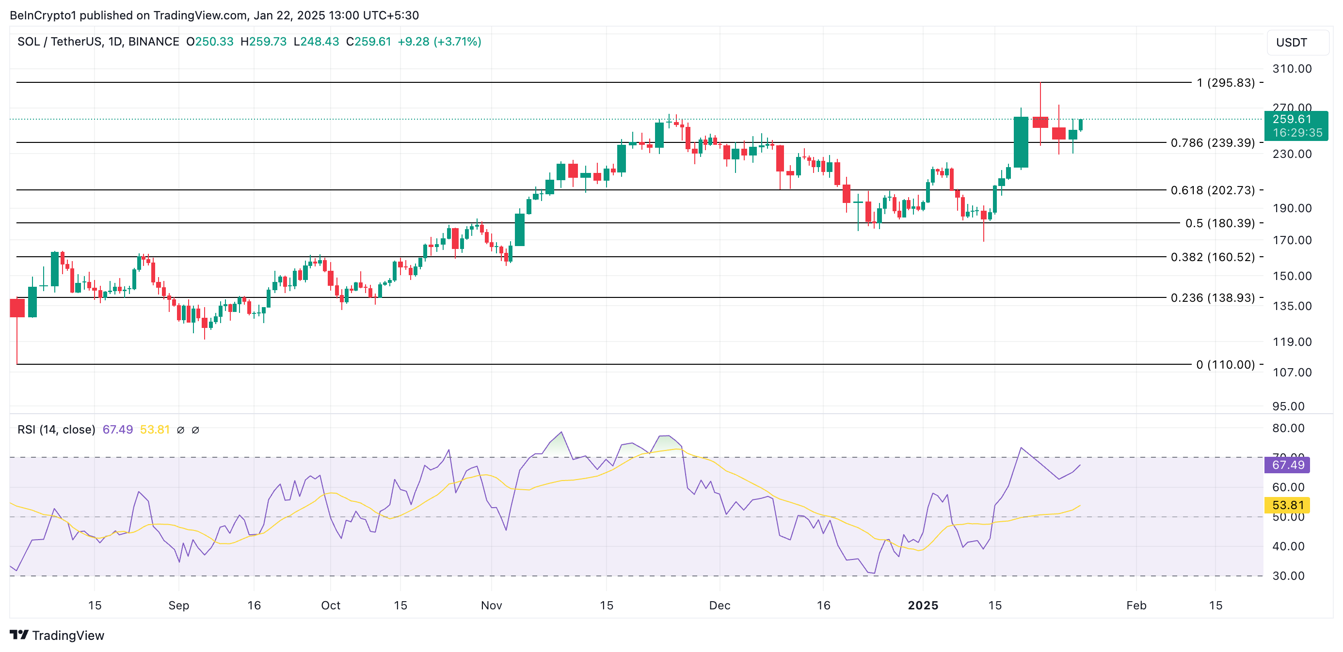 Несмотря на заметную коррекцию от исторического максимума на уровне $295,83, бычьи настроения вокруг Solana (SOL) по-прежнему не угасают. В рамках оптимистичного прогноза криптовалюта вскоре сможет вернуться к ATH