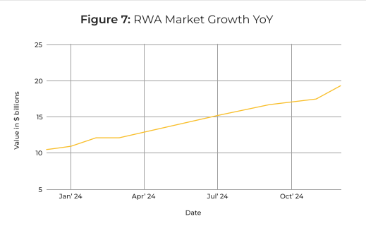 С развитием блокчейн-технолгоий и ростом институционального принятия в 2024 году сегмент RWA продемонстрировал беспрецедентный рост.