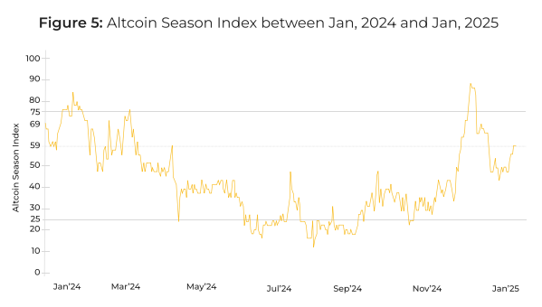 В декабре индекс альтсезона Blockchain Center ненадолго зашел на территорию аьлткоинов, однако вскоре вернулся назад к нейтральным показателям.