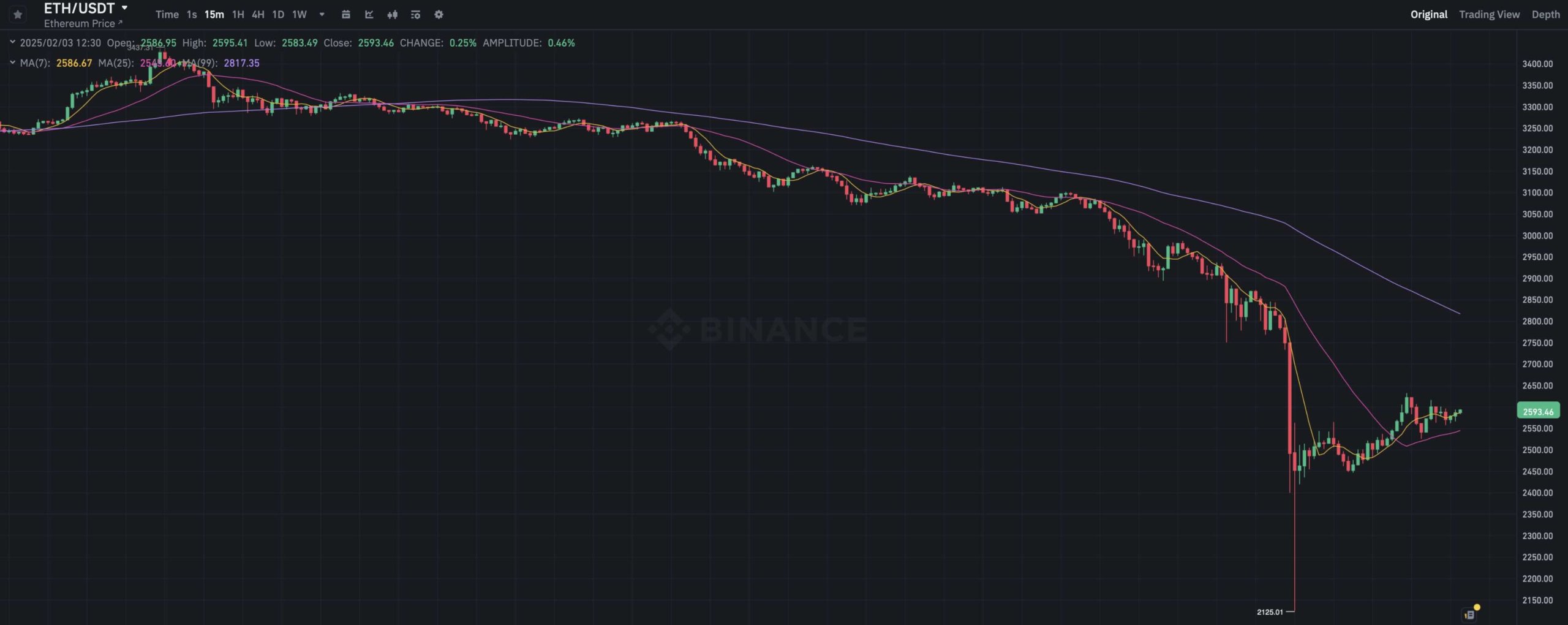 15-минутный график курса Эфириума ETH