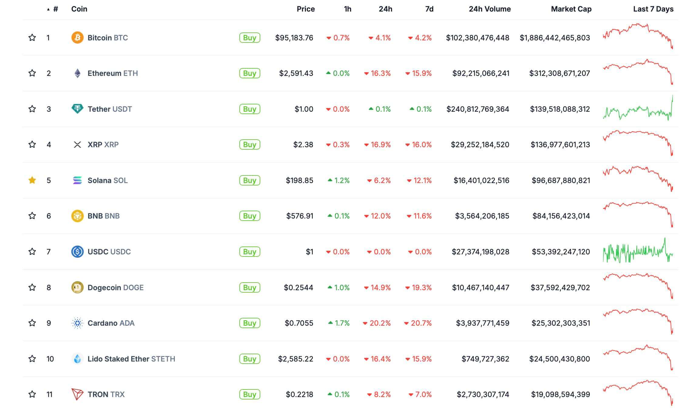 Актуальные курсы крупнейших криптовалют на рынке