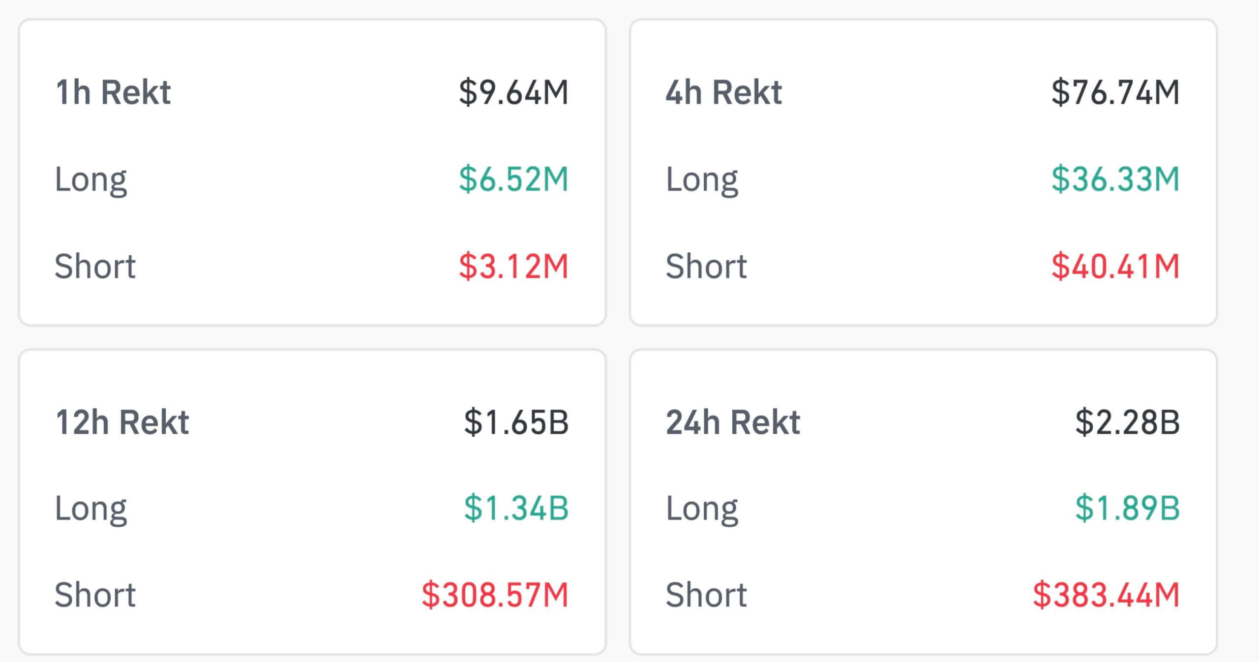 Объём ликвидаций за последние сутки составил 2.28 миллиарда долларов. 82 процента данного показателя пришёлся на длинные позиции, авторы которых делали ставку на рост рынка.