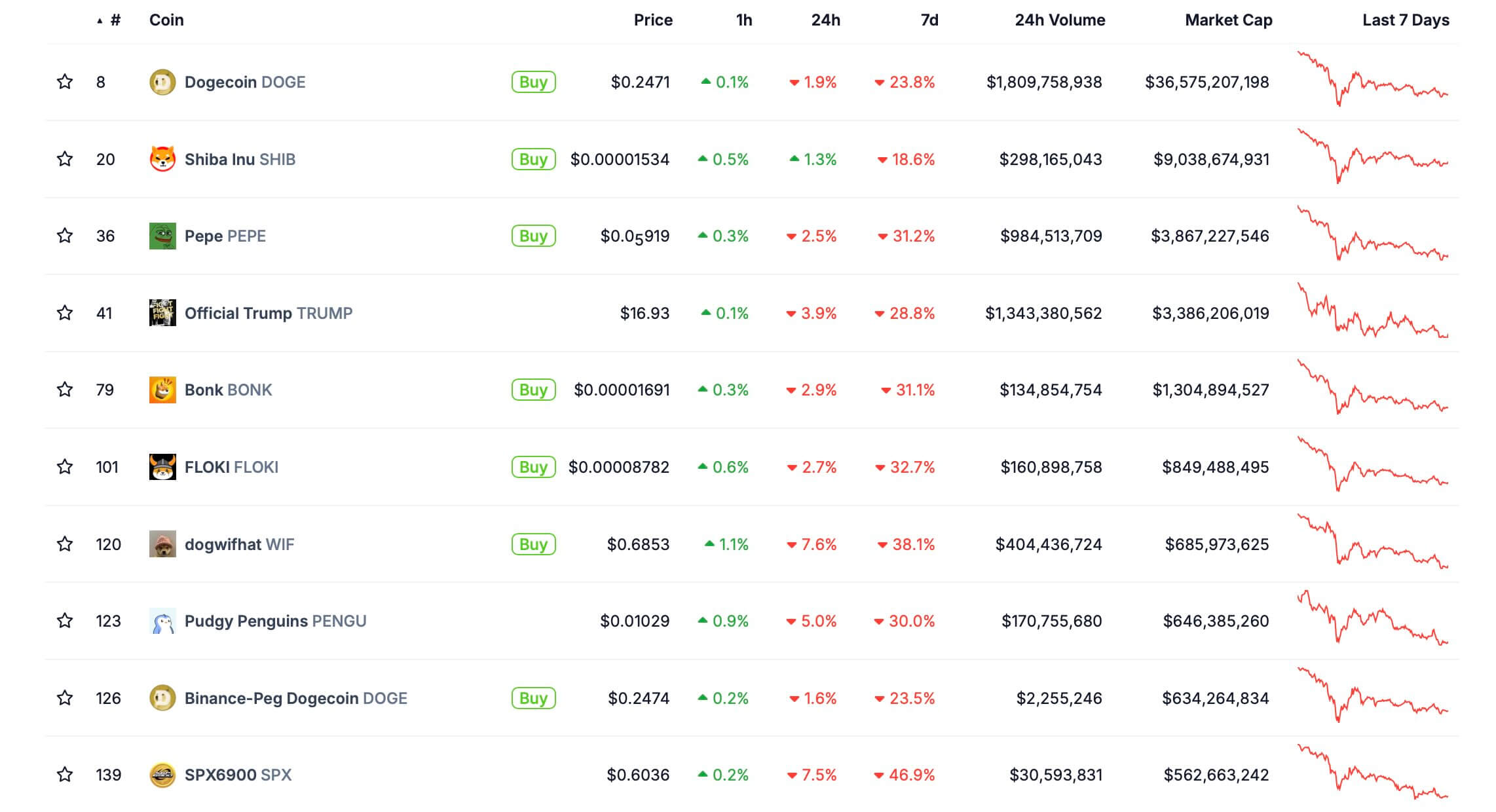 Увы, это действительно так. Для наглядности приводим рейтинг крупнейших мем-токенов по рыночной капитализации. В масштабах недели большинство из них потеряло 20-30 процентов стоимости, тогда как за месяц курсы и вовсе опустились на 40-60 процентов. Иначе говоря, инвесторы могли потерять как минимум половину вложений всего за пару недель.