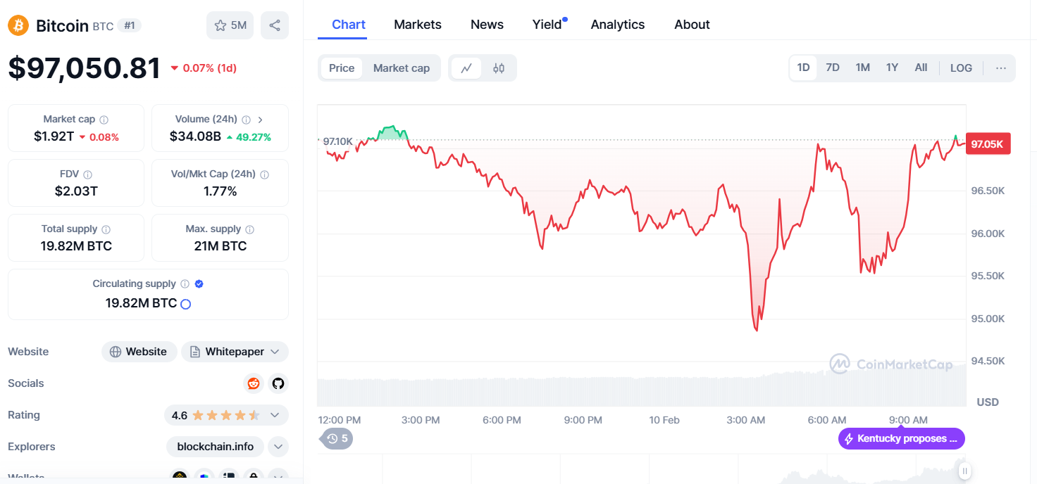 В настоящее время биткоин держится на уровне от $95 000 до $96 000, с небольшими отскоками от этой зоны поддержки. Тем не менее, подтвержденный прорыв ниже $95 000 откроет дверь для дальнейшего снижения, а следующие уровни поддержки будут находиться между $92 000 и $93 000.