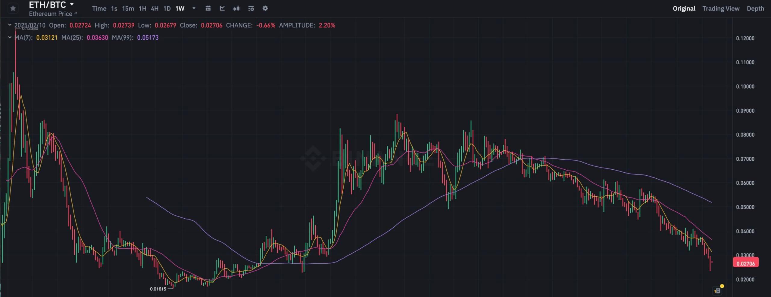 Недельный график курса Эфириума по отношению к Биткоину