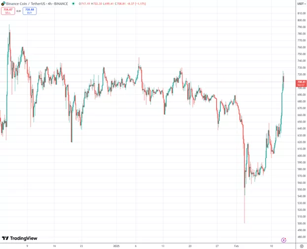 Утром 13 февраля курс $BNB протестировал отметку в $720, что в последний раз наблюдалось в середине января. Триггером роста стал выход технической дорожной карты проекта на 2025 год.