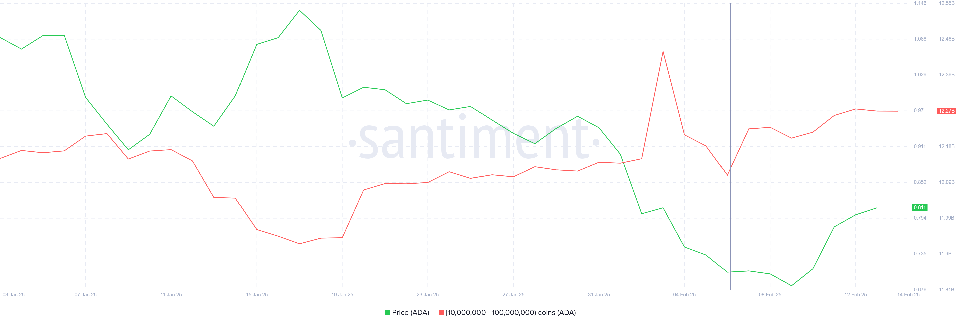 За пять дней крупные инвесторы, владеющие от 10 до 100 млн ADA, добавили в портфели еще 170 млн токенов на сумму около $136 млн. Киты воспользовались падением Cardano, чтобы укрепить позиции в этой криптовалюте. Обычно это говорит о том, что они уверены в восстановлении цены.