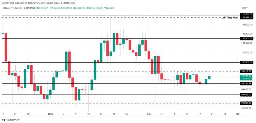 Однако если инвесторы продолжат активно накапливать BTC, то у монеты появится шанс преодолеть отметку $98 212. Успешное восстановление над уровнем $100 000 способно усилить бычий импульс подтолкнуть криптовалюту обратно к ее ATH.