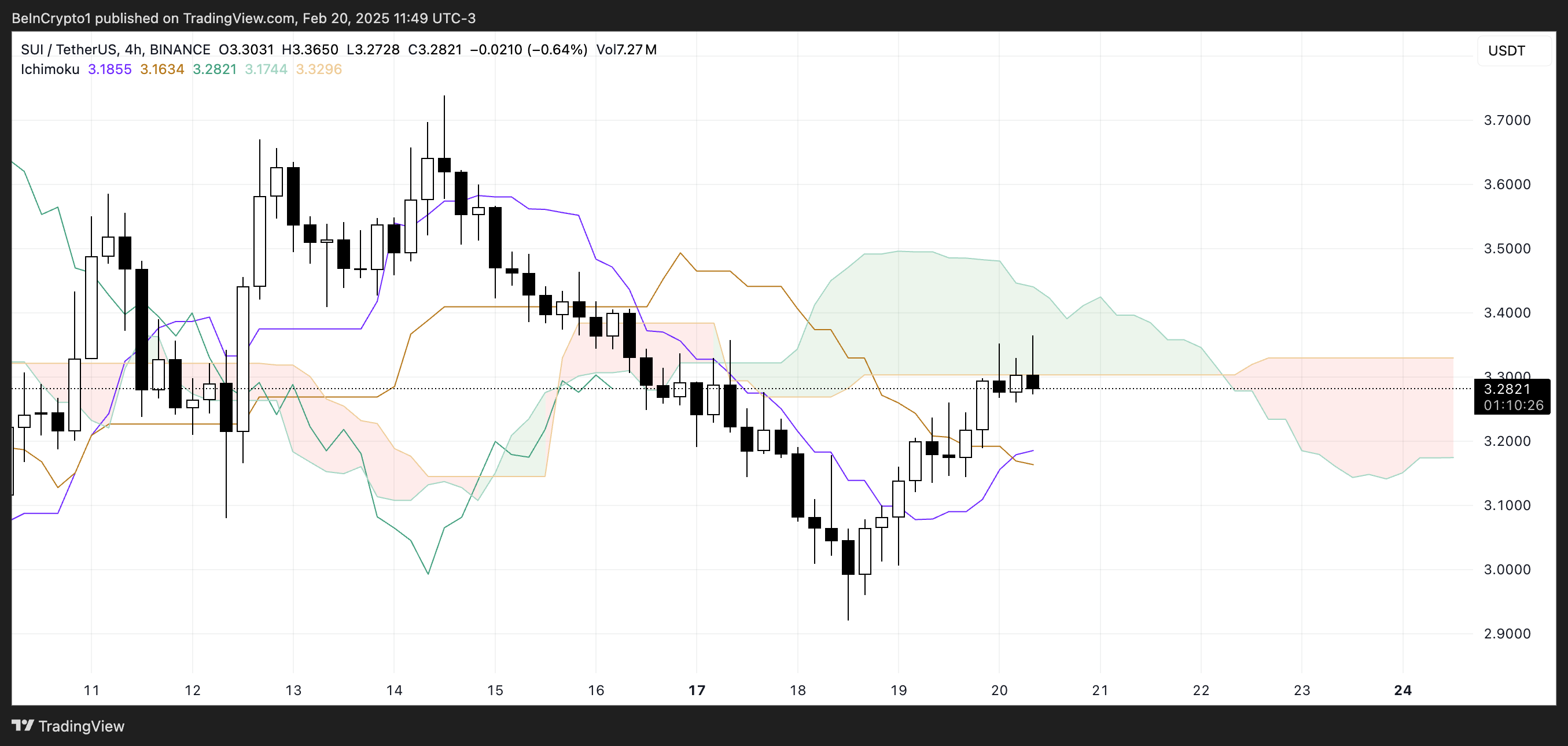 Тем временем облако Ишимоку подает смешанные сигналы и намекает на возможную консолидацию. На момент написания цена SUI находится внутри облака, что указывает на нерешительность и отсутствие четкого направления тренда. Так происходит, когда силы продавцов и покупателей приблизительно равны.