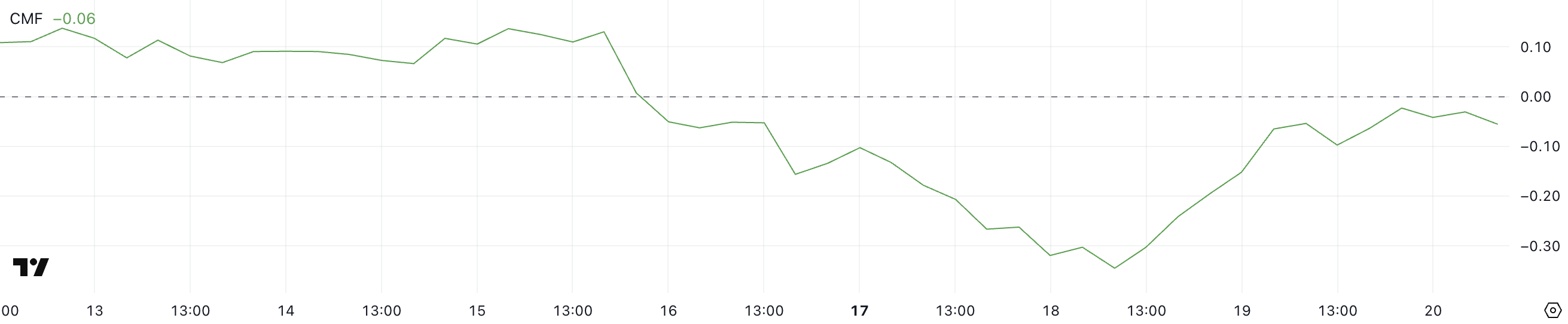 Индикатор денежного потока Чайкина (CMF) сейчас находится в восходящем тренде: два дня назад он находился на отметке -0,35, а к моменту публикации поднялся до -0,06.