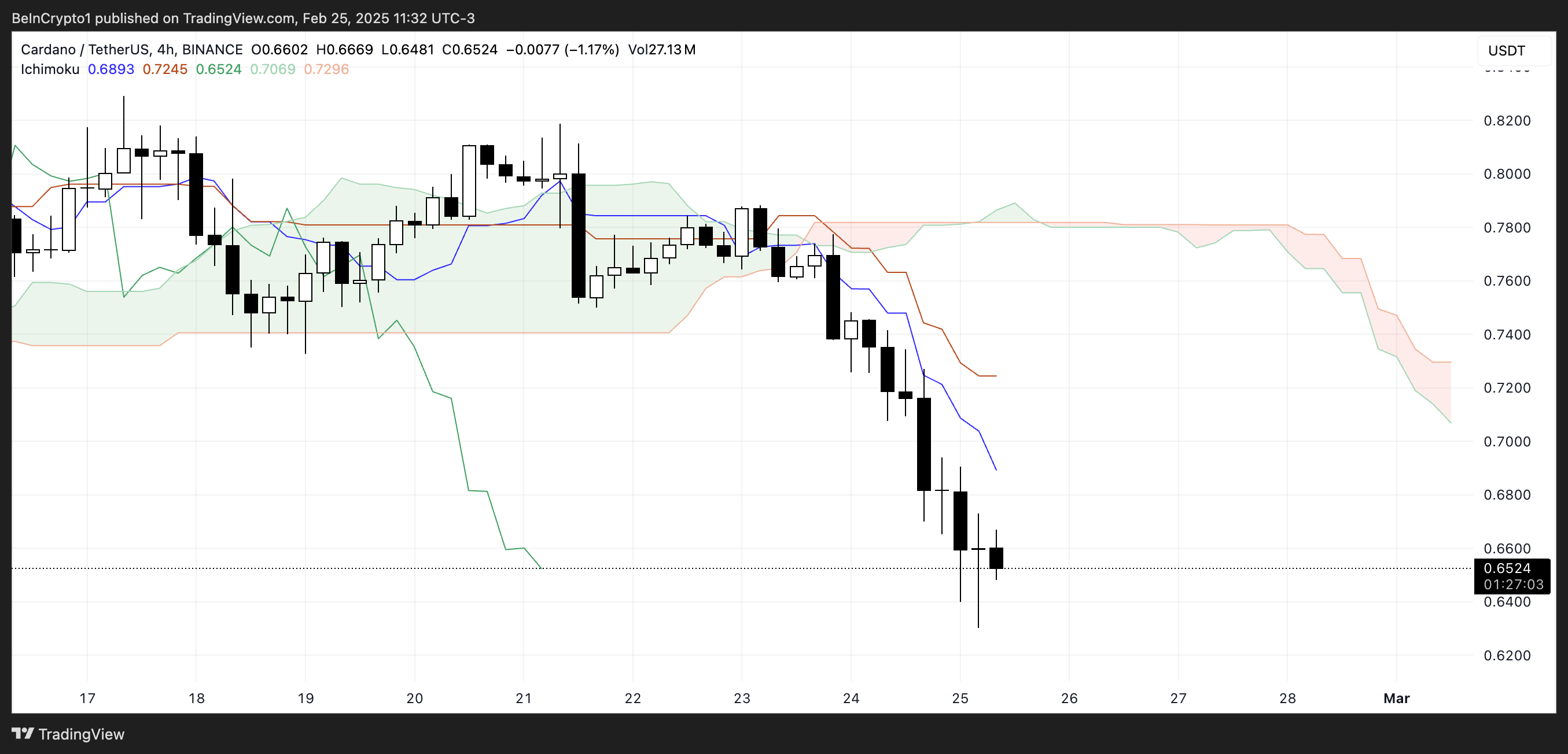 Облако Ишимоку демонстрирует Сильный Медвежий Настрой для Cardano