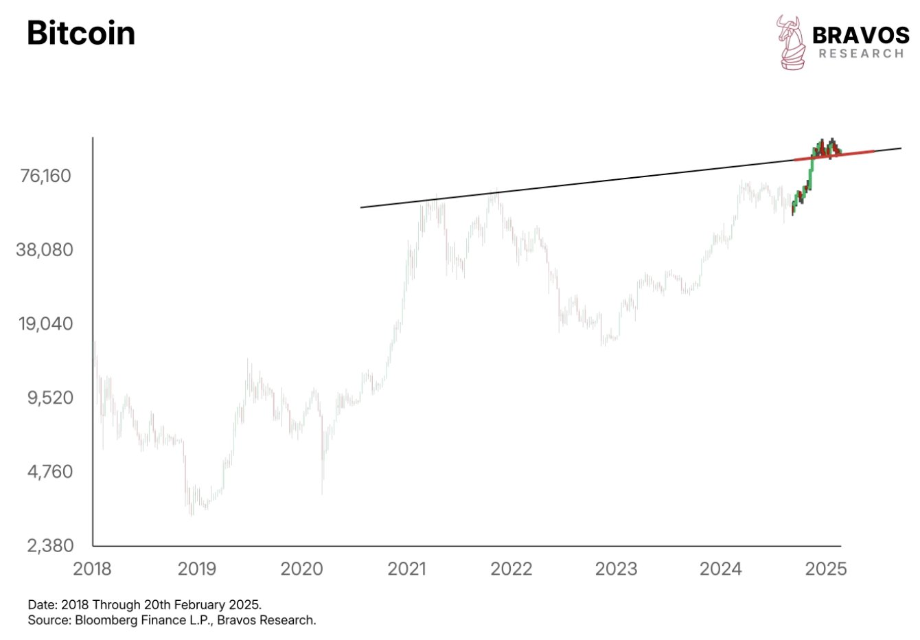 К концу 2024 года биткоин уже пробил ключевые уровни сопротивления, а в условиях сильной экономики на рынке биткоина сохранятся бычьи настроения, считают в Bravos Research.