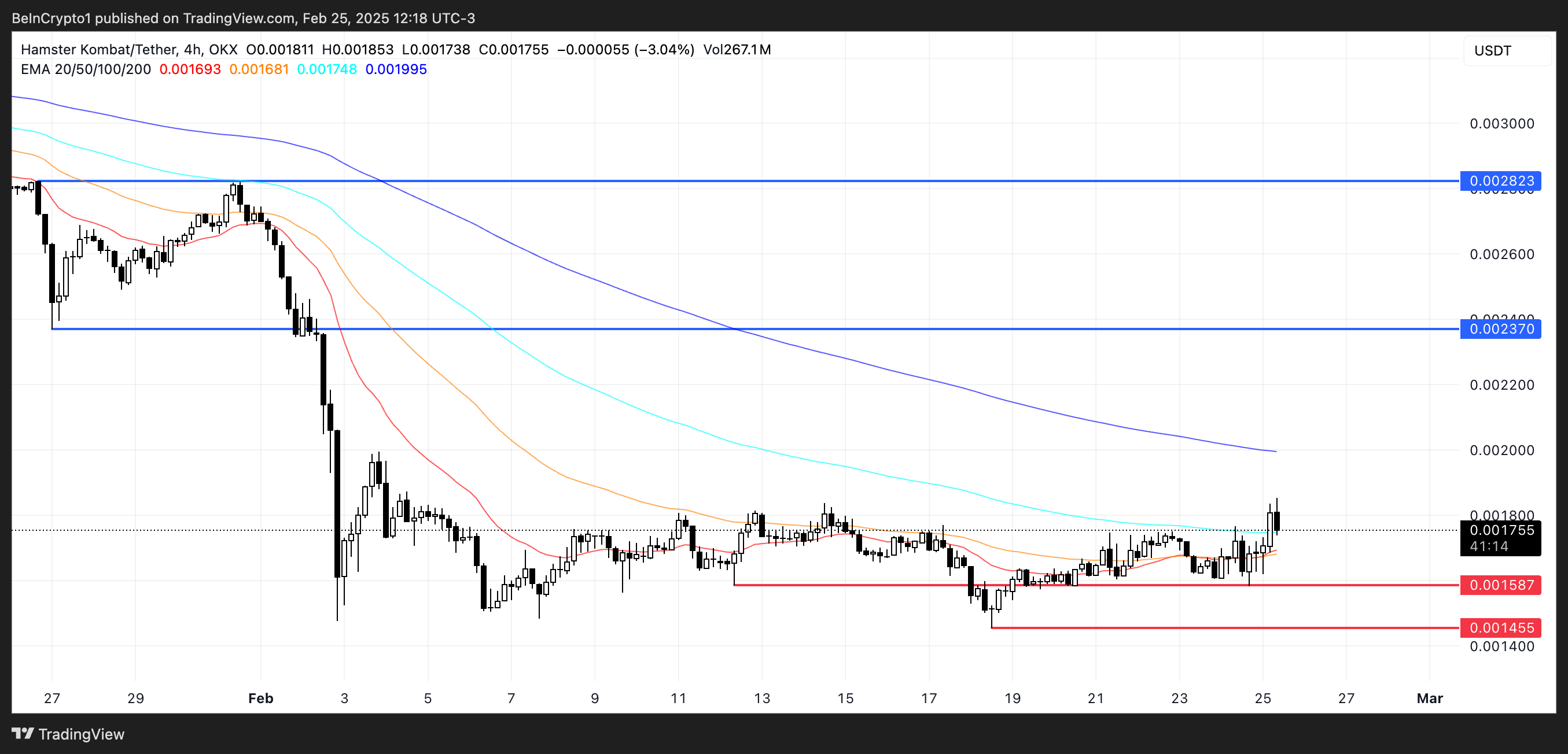 Однако если же восходящий тренд растеряет силу, HMSTR рискует оказаться под давлением продаж. Тогда курс токена может протестировать поддержку на $0,00158. В случае падения этого уровня падение углубится до $0,00145.