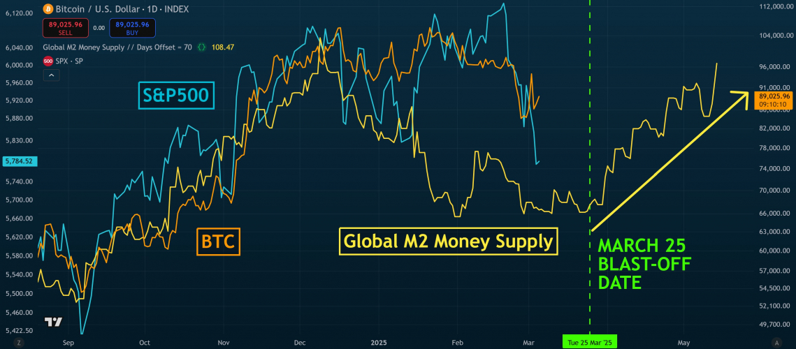 Аналитик Colin Talks Crypto наблюдает за восстановлением глобальной денежной массы М2 в поисках признаков нового ралли биткоина. «Ралли для акций, биткоина, криптовалют будет эпическим», — сообщил он своим подписчикам в X на этой неделе, повторяя предыдущий прогноз. «25 марта — приблизительная дата».