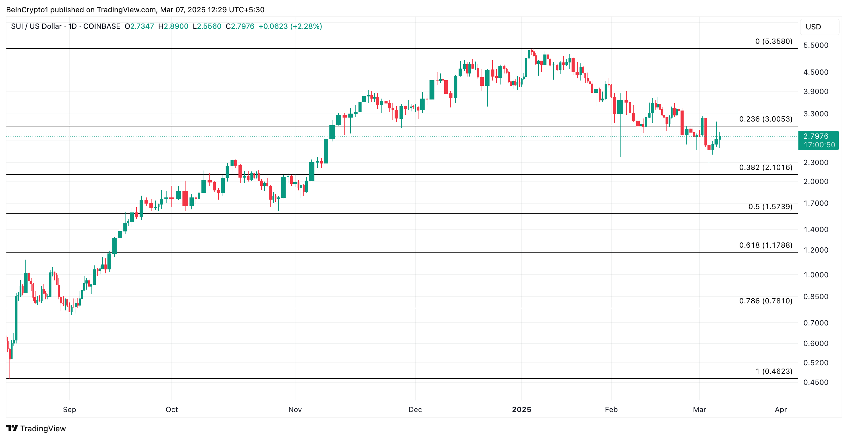 Однако в обратном случае SUI может столкнуться с падением, которое приведет к потере недавних достижений и снижению — вероятно, до $2,10.