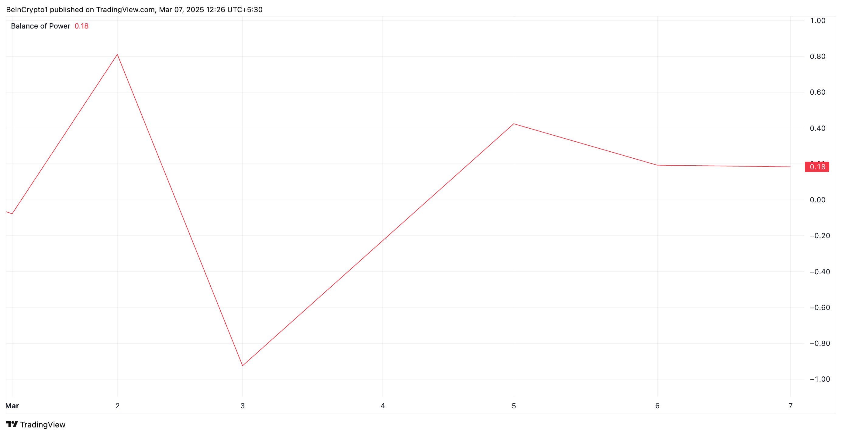 Индикатор Balance of Power (BoP) подтверждает высокую активность покупателей. На момент показатель находится выше нуля на уровне 0,18.