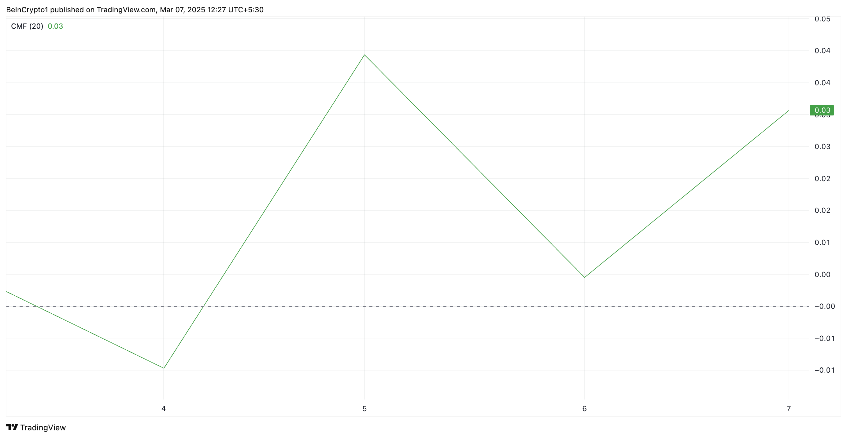 Кроме того, индикатор денежного потока Чайкина (CMF) поддерживает оптимистичный прогноз. На момент написания статьи показатель растет и находится на положительной отметке 0,02.
