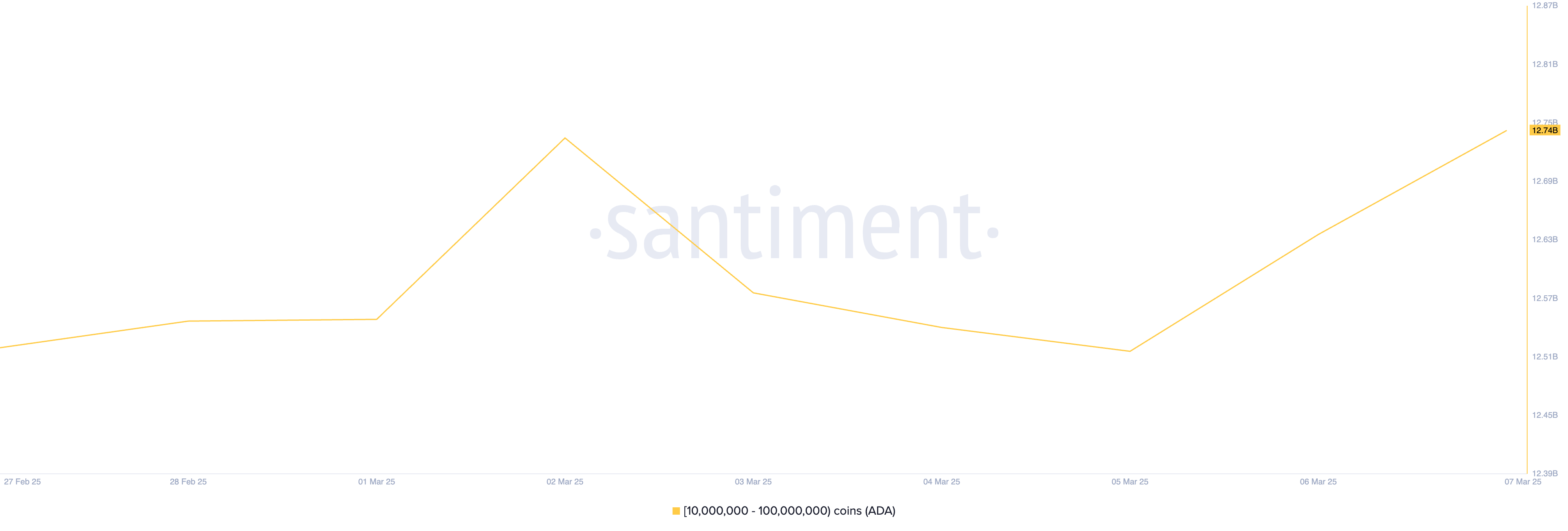 На момент публикации киты владеют 12,74 млрд ADA, что является их максимальным накоплением за последние шесть месяцев.