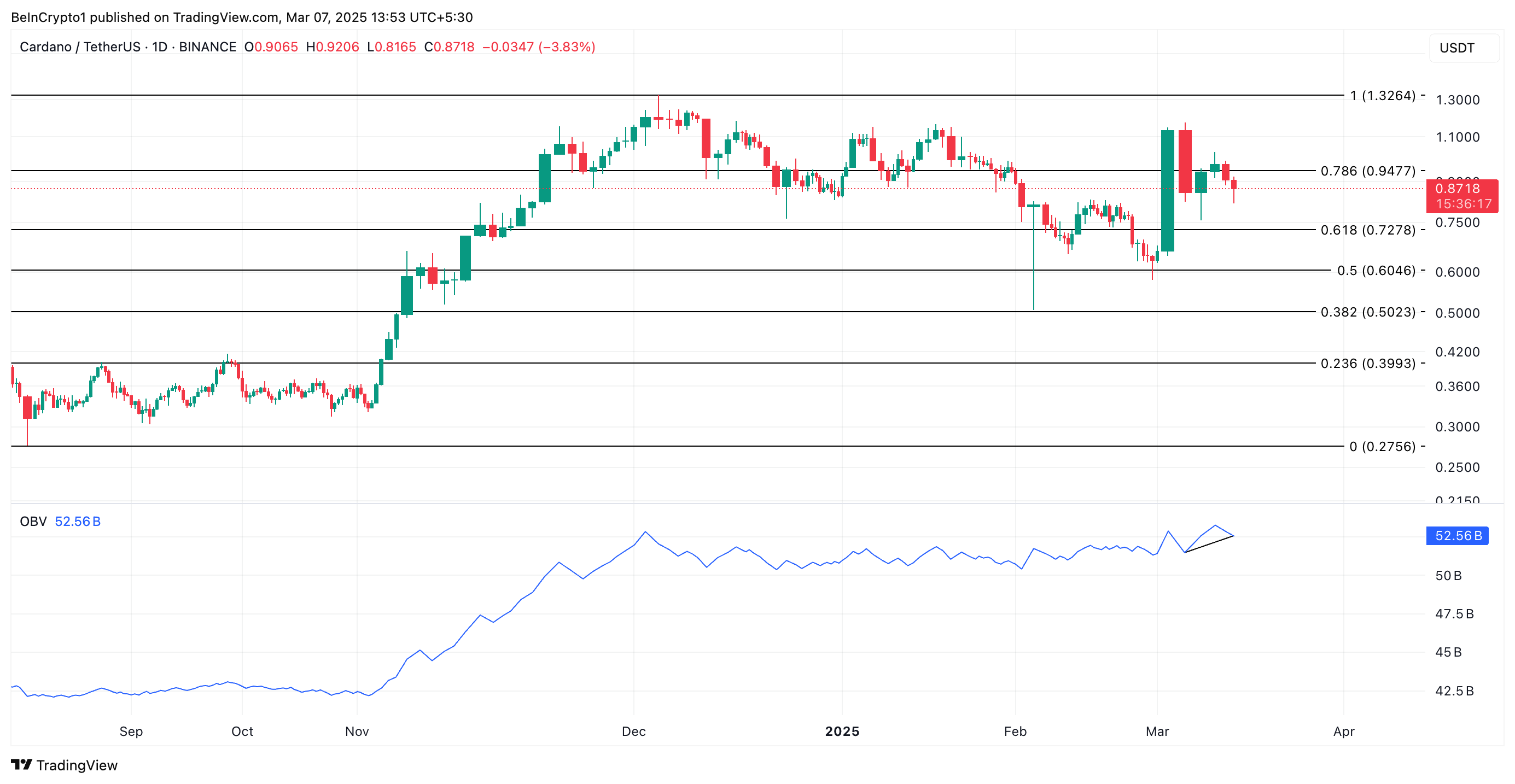 На момент написания этого анализа ADA торгуется по $0,8735. За последние 24 часа он подешевел на 6,9%.